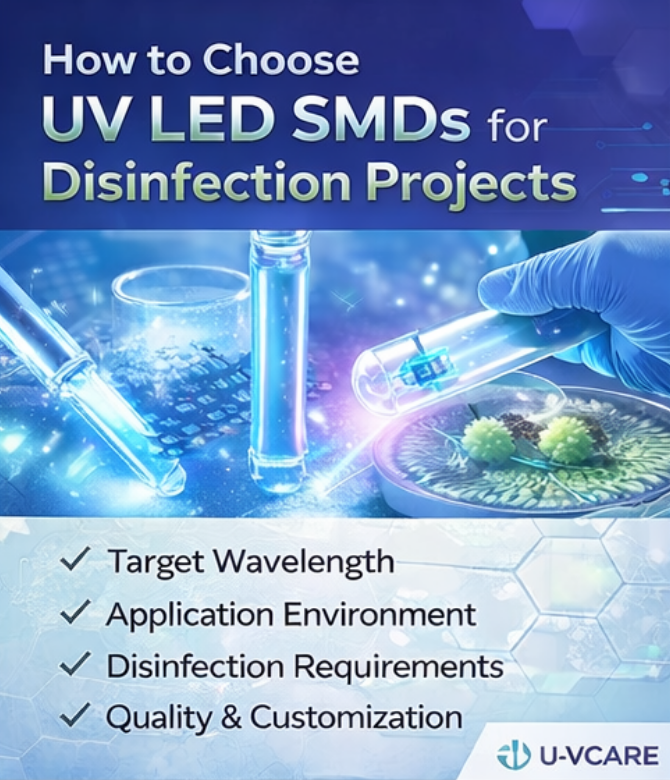 Choosing the right UV LED SMDs is a critical step in the success of water and air disinfection projects. Many project failures stem from improper wavelength selection or insufficient optical power rather than from system design flaws.