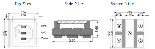 UVA+C LED 275nm+400nm-120°-10*20mil