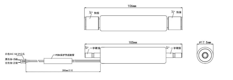 ① This module has a terminal model of XH2.54-2P, and the terminal color is white. Terminals and cables can be customized upon request.
